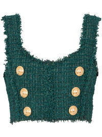 6-Buttons tweed cropped top Highlights - Dark green - Tweed - Frayed detailing - Embossed gold-tone buttons - Wide shoulder straps - Sweetheart neck - Sleeveless - Scoop neck - Cropped - Rear zip fastening Imported Composition Cotton 100%