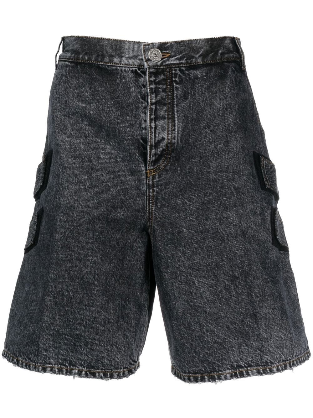 acid-wash denim shorts navy blue cotton blend acid wash front button fastening two side flap pockets knee-length Made in Italy Composition Lining: Polyester 65%, Cotton 35% Outer: Cotton 100% SIZE & FIT Model measurements Height 6 ft 2 in(1.87 m) Bust/Chest 35.82 in(91 cm) Hips 35.43 in(90 cm) Waist 27.95 in(71 cm) Washing instructions Machine Wash