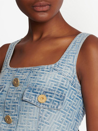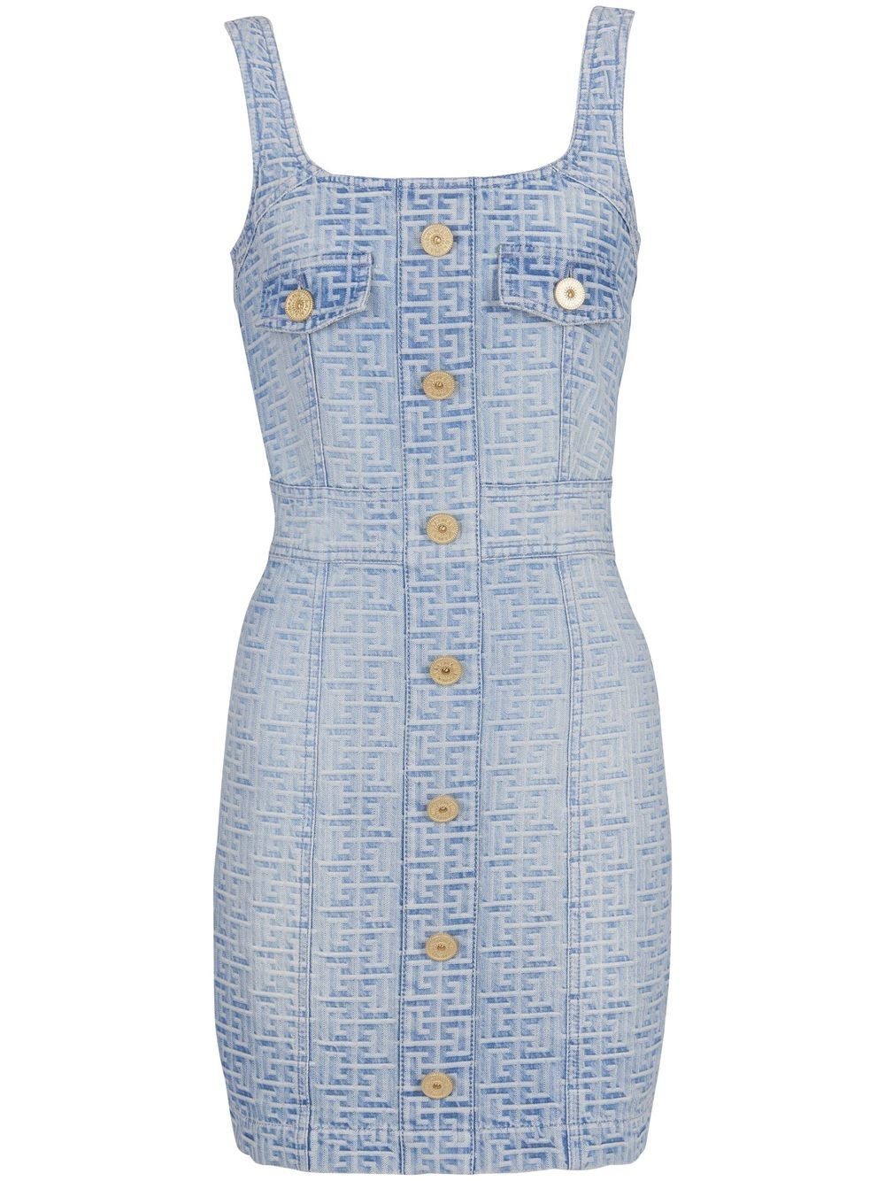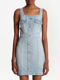 all-over monogram dress blue denim square neck debossed monogram pattern decorative button detailing rear zip fastening sleeveless Made in Italy Composition Body: Cotton 100% SIZE & FIT Measurement HIPS 39.37 in(100 cm) LENGTH 31.88 in(81 cm) WAIST 31.49 in(80 cm) BUST 35.43 in(90 cm)