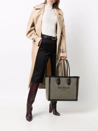 B-Army 42 tote bag Inspired by the brand's military history and its famous following, Balmain's B-Army tote bag combines durable canvas and smooth calf leather trims to create a highly-versatile accessory. Made in Italy Composition Lining: Cotton 100% Outer: Cotton 100% SIZE & FIT Model measurements Height 5 ft 10 in(1.78 m) Bust/Chest 33.46 in(85 cm) Hips 36.22 in(92 cm) Waist 23.22 in(59 cm)