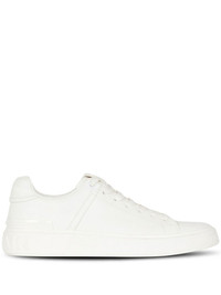 B-Court low-top sneakers Inspired by basketball shoes, Balmain's B-court sneakers are presented in new colours and patterns season after season. For SS23, the French house presents this white version of the design for a minimal look. Highlights - White - Calf leather - Logo patch at the tongue - Front lace-up fastening - Branded insole - Almond toe - Flat rubber sole Made in Italy Composition Lining: CALFSKIN 100% Outer: CALFSKIN 100% Sole: CALFSKIN 100% SIZE & FIT Measurement HEEL 1.37 in(3.5 cm) Sole height 0.78 in(2 cm)
