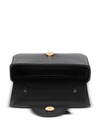 Bbuzz logo-plaque mini bag From Balmain's B-Buzz collection, this calf-leather shoulder bag is imagined in a tonal black hue. This creates a timeless finish for the piece, whilst the signature logo plaque to the front adds an opulent twist. Highlights - Black - Calf leather - Signature b logo plaque - Debossed logo to the rear - Gold-tone hardware - Single flat top handle - Foldover top with magnetic fastening - Adjustable detachable shoulder strap - Main compartment - Internal card slot - Full lining Made in Italy Composition Outer: Calf Leather 100% SIZE & FIT Measurement DEPTH 2.55 in(6.5 cm) HEIGHT 4.52 in(11.5 cm) WIDTH 7.48 in(19 cm)