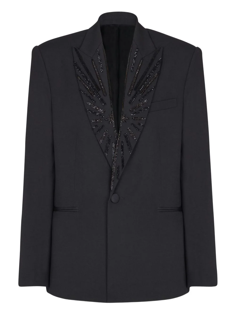beaded-lapel single-breasted blazer Highlights - Black - Beaded embellishment - Button fastening - Notched lapels - Buttoned cuffs - Flap pockets Imported Composition Outer: Virgin Wool 100% Washing instructions Specialist Cleaning