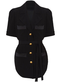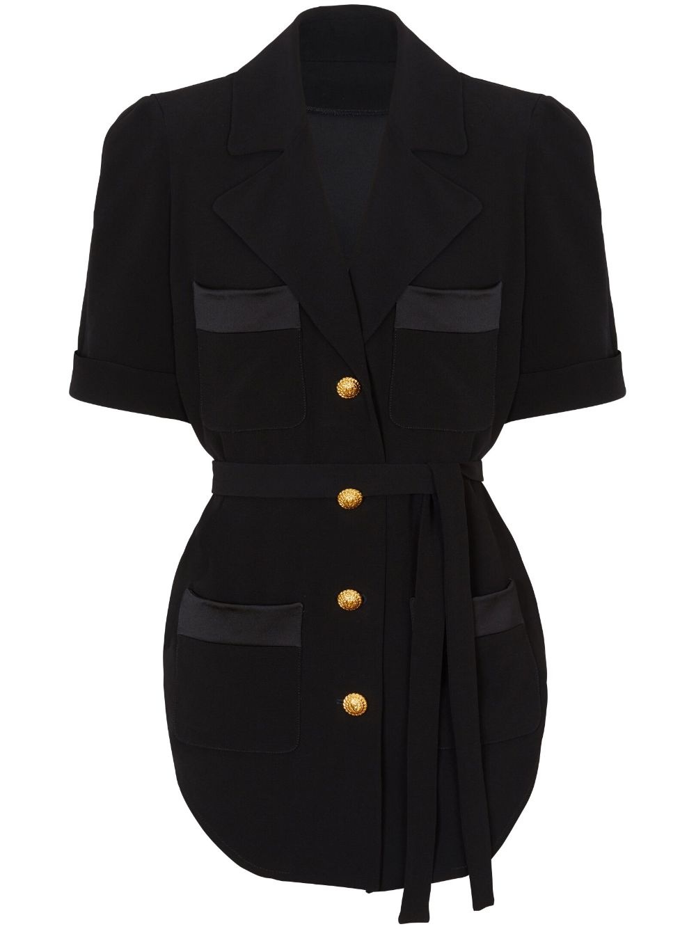 belted crepe short-sleeve shirt Highlights - Black - Crepe texture - Notched lapels - V-neck - Front button fastening - Logo-embossed buttons - Front welt pockets - Short sleeves - Turn-up cuffs - Belted waist - Straight hem Imported Composition Viscose 100% Washing instructions Specialist Cleaning