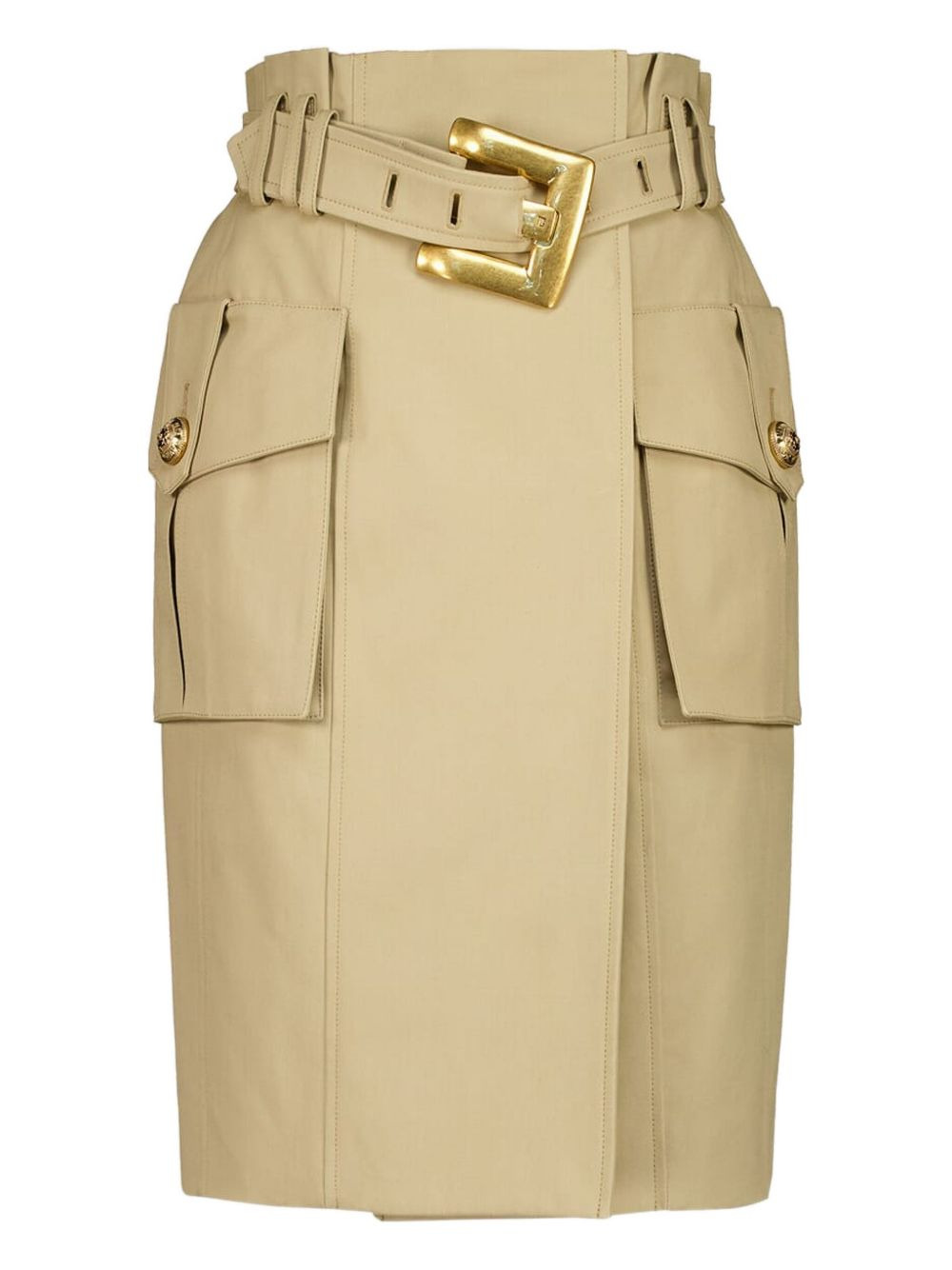belted skirt Highlights - Beige - Buckle belt - Side pockets - Button embellishment - High waist - Cotton Imported Composition Cotton 100% Washing instructions Read Manufacturer Guidelines