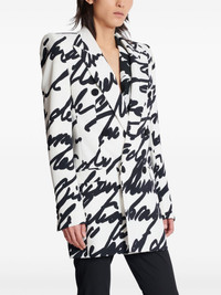 Big Love blazer Highlights - White/black - Crepe texture - Stretch-design - Double-breasted button fastening - Peak lapels - Slogan print - Shoulder pads - Long sleeves - Button-fastening chest pocket - Two front flap pockets - Buttoned cuffs - Straight hem Imported Composition Viscose 96%, Elastane 4% Washing instructions Specialist Cleaning