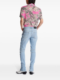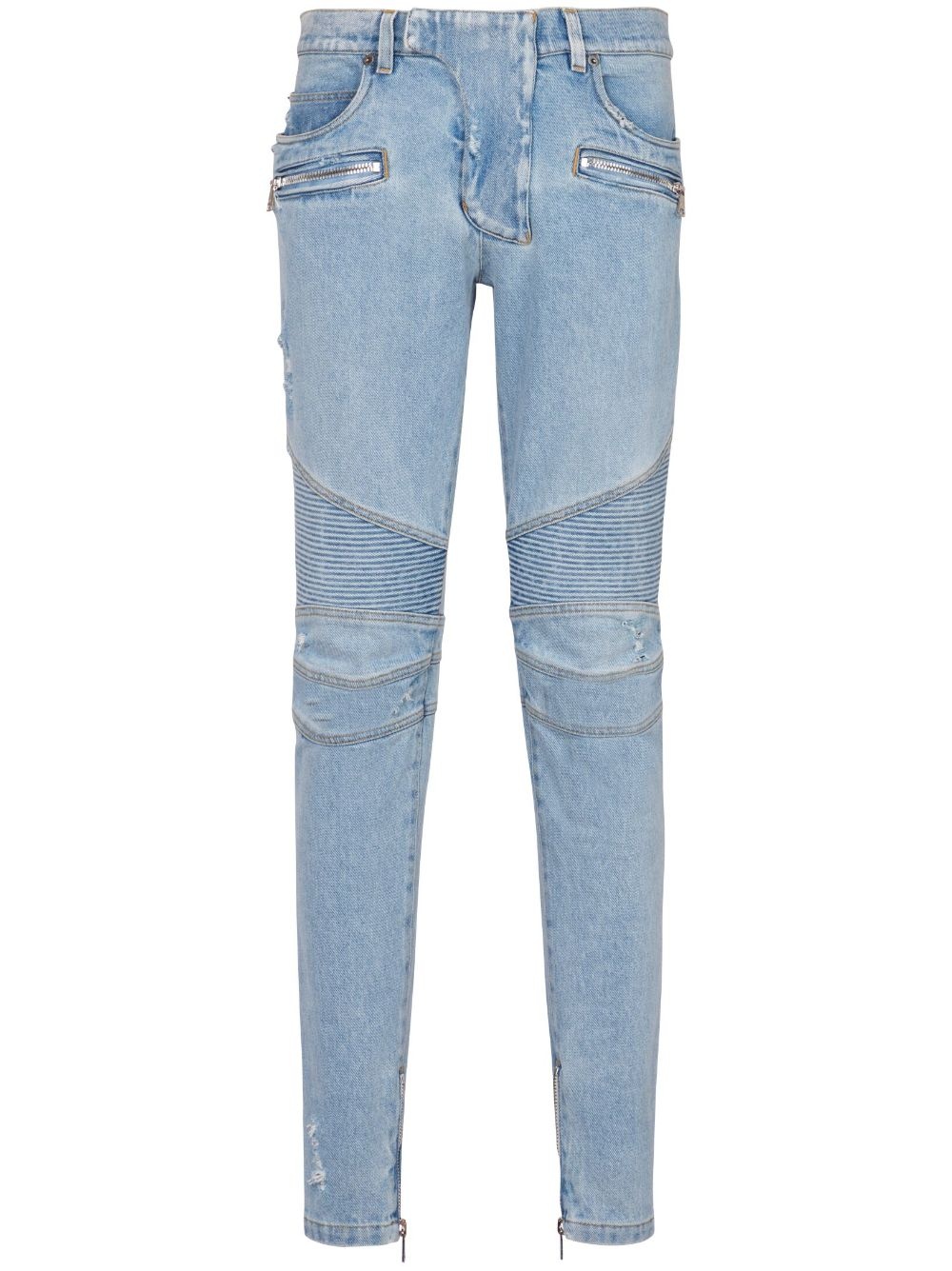 Biker mid-rise skinny jeans Highlights - Light blue - Stretch-cotton - Washed denim - Panelled design - Ribbed panelling - Logo patch to the rear - Ripped detailing - Contrast stitching - Skinny cut - Mid-rise - Concealed front fastening - Belt loops - Classic five pockets - Two side zip-fastening pockets - Ankle zips Made in Italy Composition Cotton 97%, Elastane 3%