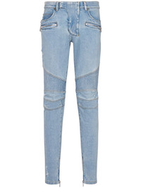 Light blue denim biker jeans