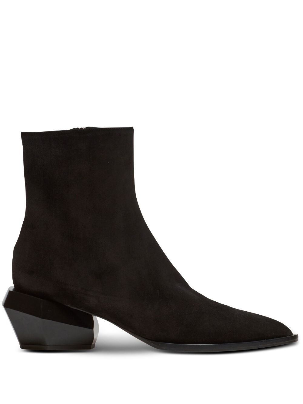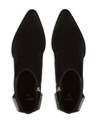 Billy suede ankle boots Balmain's Billy ankle boots are grounded on a geometric heel, showcasing the brand's timeless and luxurious aesthetic. They are crafted from black suede and topped with pointed toes. Highlights - Black - Suede - Pointed toe - Side zip fastening - Branded insole - Low geometric heel Made in Italy Composition Body: Bos Taurus 100% Sole: Leather 100%