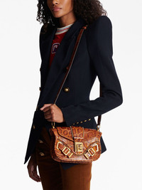 Blaze crocodile-embossed shoulder bag Highlights - Cognac brown - Leather - Embossed crocodile effect - Gold-tone hardware - Decorative zip detailing - Decorative buckle detailing - Stud embellishment - Pb logo clasp - Foldover top - Main compartment - Internal patch pocket - Adjustable shoulder strap Made in Italy Composition Bos Taurus 100%