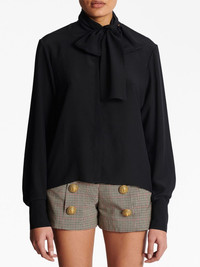 bow-detail buttoned blouse Highlights - Black - Silk - Pussy-bow collar - Long puff sleeves - Buttoned cuffs - Straight hem Imported Composition Body: Silk 100% SIZE & FIT Measurement LENGTH 26.37 in(67 cm) FittingInformation Designed to be unstructured, offering a loose fit throughout The tie fastening gives an adaptable and personalised fit Made from a lightweight non-stretch fabric This piece fits true to size – take your usual size