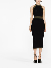 button-detail knitted dress Balmain is known for elevating designs with signature button detailing. This dress is a fine example, transforming the traditional fitted silhouette with gold-tone hardware across the shoulders. Made in France Composition Viscose 82%, Polyester 17%, Metal 1% SIZE & FIT Model measurements Height 5 ft 10 in(1.77 m) Bust/Chest 31.49 in(80 cm) Hips 35.03 in(89 cm) Waist 23.22 in(59 cm) Measurement LENGTH 48.03 in(122 cm) WAIST 21.25 in(54 cm) HIPS 28.74 in(73 cm) FittingInformation This piece fits true to size. We recommend you get your regular size Cut for a slim fit Made with a mid-weight fabric Washing instructions Dry Clean Only