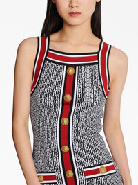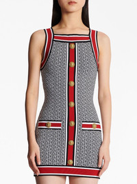 button-embellished monogram minidress Highlights - Multicolour - Knitted construction - Monogram jacquard - Contrasting border - Embossed gold-tone buttons - Square neck - Wide shoulder straps - Sleeveless - Exposed rear zip fastening - Thigh-length Made in France Composition Body: Viscose 88%, - 10%, Polyamide 2% SIZE & FIT Measurement HIPS 32.28 in(82 cm) LENGTH 29.13 in(74 cm) WAIST 25.19 in(64 cm) BUST 28.34 in(72 cm)