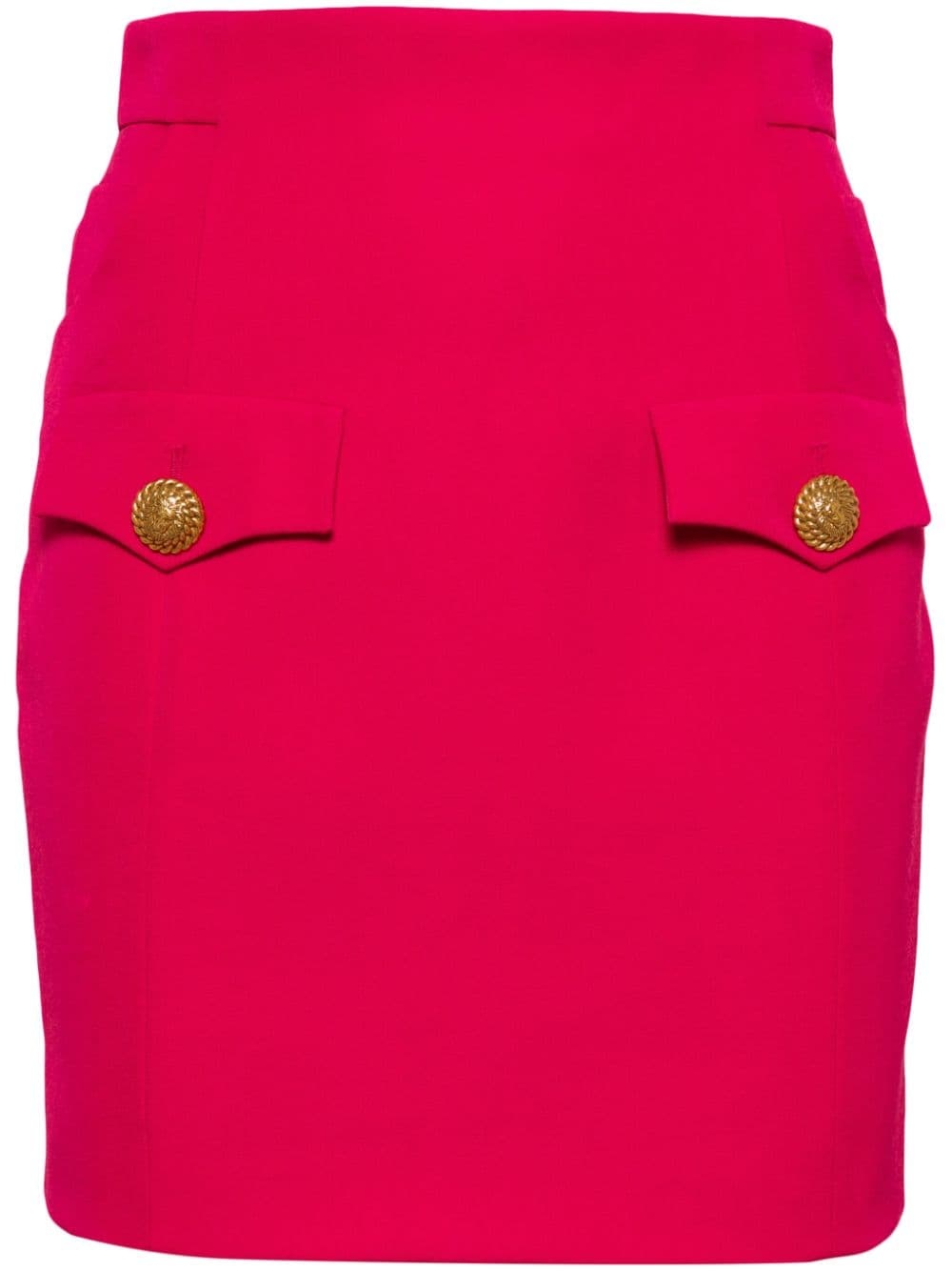 button-embellished virgin-wool miniskirt In line with the brand's affinity for sharp, tailored dressing, this hot-pink Balmain miniskirt is precisely cut to a high-waisted silhouette accented with gold-tone buttons embossed with the house's signature lion head motif, lending an unmistakable, sparkling touch. Highlights - Hot pink - Virgin wool - Lion head motif - Embossed gold-tone buttons - Faux pocket detail - High-waisted - Rear zip fastening - Two side slash pockets - Two rear welt pockets - Thigh-length - Straight hem Imported Composition Outer: Virgin Wool 100% Lining: Viscose 52%, Cotton 48% SIZE & FIT Model measurements Height 5 ft 9 in(1.75 m) Bust/Chest 31.88 in(81 cm) Hips 35.03 in(89 cm) Waist 23.22 in(59 cm) Measurement HIPS 32.28 in(82 cm) LENGTH 17.32 in(44 cm) WAIST 25.98 in(66 cm) FittingInformation This mini-length skirt is intended to be worn high on the waist Made from a midweight non-stretch fabric This piece fits true to size – take your usual size Washing instructions Dry Clean Only