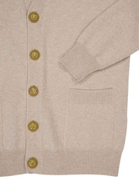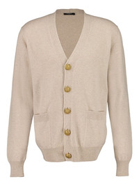 button-up cardigan Highlights - Beige - Front button fastening - V-neck - Long sleeves - Ribbed cuffs and hem - Side patch pockets Made in France Composition Cashmere 50%, Virgin Wool 50%