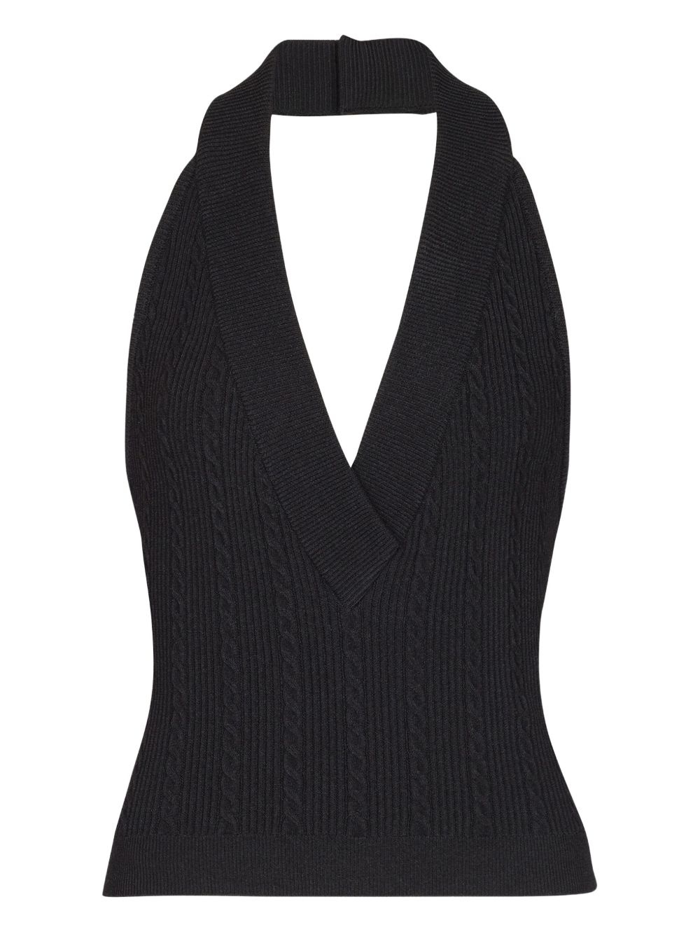 cable-knit halterneck top Highlights - Black - Rear button fastening - V-neck - Sleeveless - Open back Made in France Composition Viscose 83%, Polyester 17%