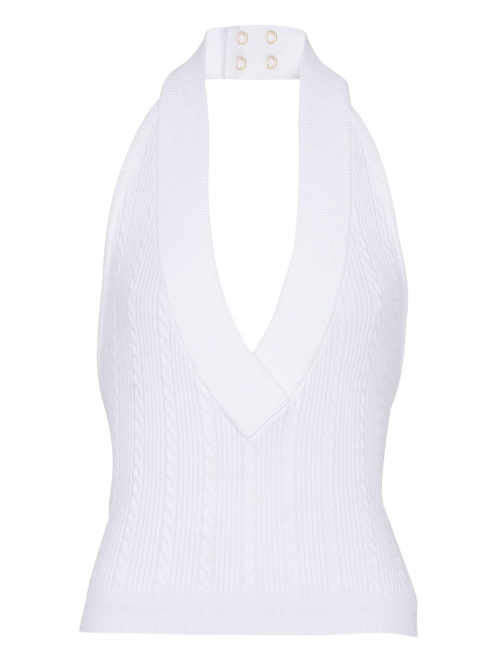 cable-knit halterneck top Highlights - White - Rear press-stud fastening - Plunging v-neck - Open back Made in France Composition Viscose 83%, Polyester 17%