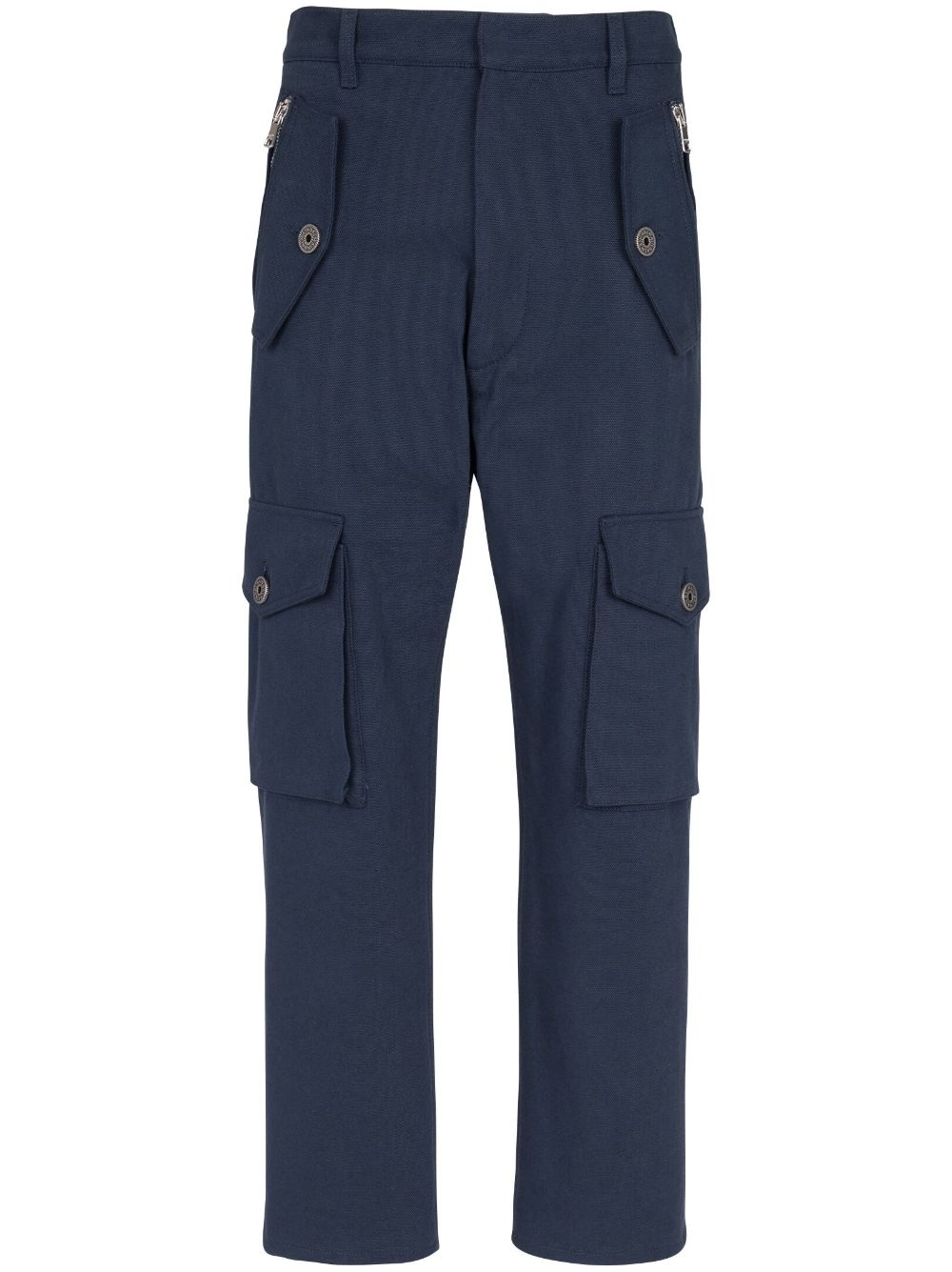 cargo cotton cropped trousers Highlights - Navy blue - Cotton - Silver-tone logo plaque - Tonal stitching - Belt loops - Cropped leg - Concealed front fastening - Two rear button-fastening pockets - Two side zip-fastening pockets - Two side button-fastening pockets - Two front cargo pockets Made in Italy Composition Cotton 100%