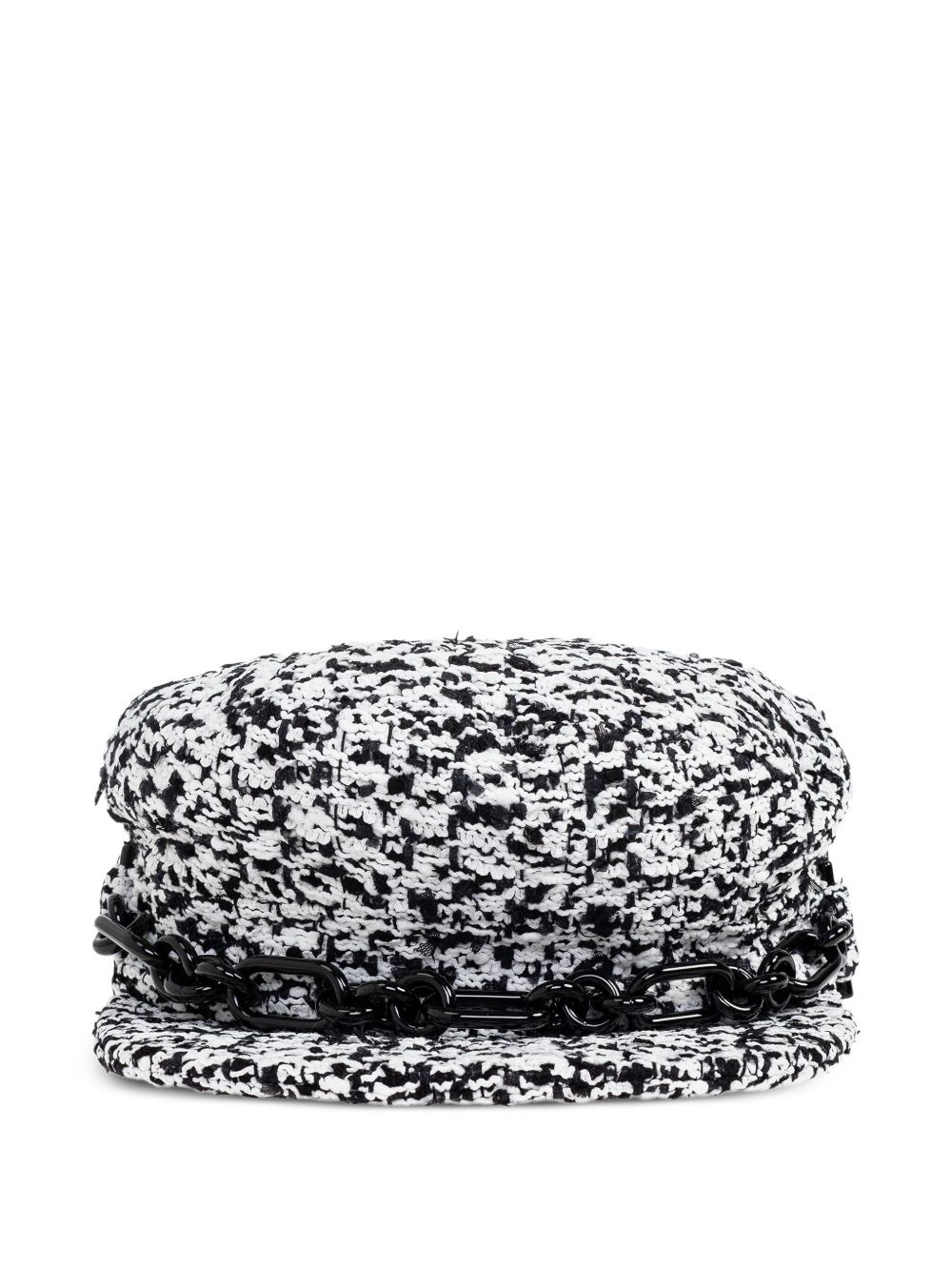 chain-detail tweed beret Highlights - Grey/black - Chain detail - Tweed - Flat crown Imported Composition Polyamide 93%, Viscose 7%