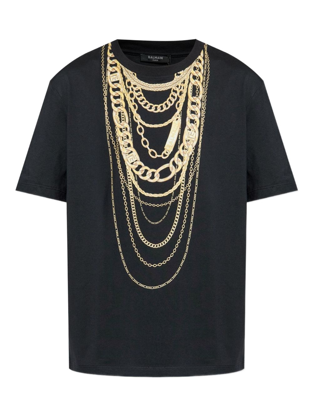 chain-print T-shirt Highlights - Black - Gold-tone chain print - Crew neck - Short sleeves - Straight hem Made in Italy Composition Cotton 100% Washing instructions Read Manufacturer Guidelines