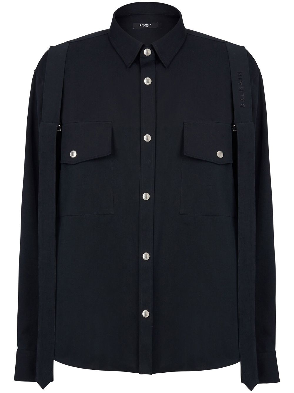 chest flap-pocket detail shirt jet black cotton strap detailing classic collar front button fastening long sleeves two chest flap pockets Made in Italy Composition Body: Cotton 100% Washing instructions Read Manufacturer Guidelines