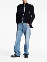 contrast-pocket wide-leg jeans Arriving in a light blue wash, these Balmain jeans rework the traditional five pocket design, with contrasting side and rear pockets enlivening the wide-leg silhouette. Highlights - Light blue - Cotton - High waist - Front button and zip fastening - Belt loops - Contrasting pocket - Rear patch pocket - Logo plaque - Wide leg - Long length Made in Italy Composition Cotton 100%