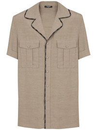 contrast-trim shirt Highlights - Sand brown - Front button fastening - Notched collar - Contrasting trim - Logo-print edge - Short sleeves - Chest flap pockets - Applique logo - Straight hem Made in Italy Composition Cupro 57%, Lyocell 43%