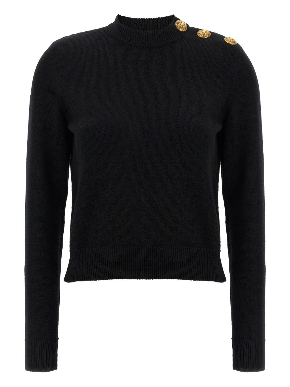 crew-neck button-embellished sweater Highlights - Black - Crew neck - Long sleeves - Cashmere-wool blend - Recycled cashmere wool - Shoulder button embellishment Made in France Composition Cashmere 50%, Virgin Wool 50% Washing instructions Read Manufacturer Guidelines