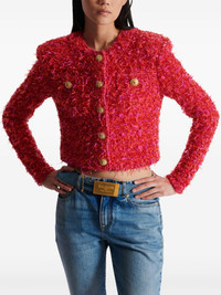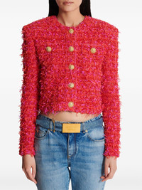 cropped tweed jacket Highlights - Rose red - Tweed - Cropped - Metallic threading - Front press-stud fastening - Collarless - Shoulder pads - Long sleeves - Two button-fastening chest pockets - Straight hem Made in France Composition Polyamide 100%