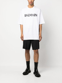 BALMAIN MEN Loose Fit Crystal Logo SS Oversized T-Shirt White/Black