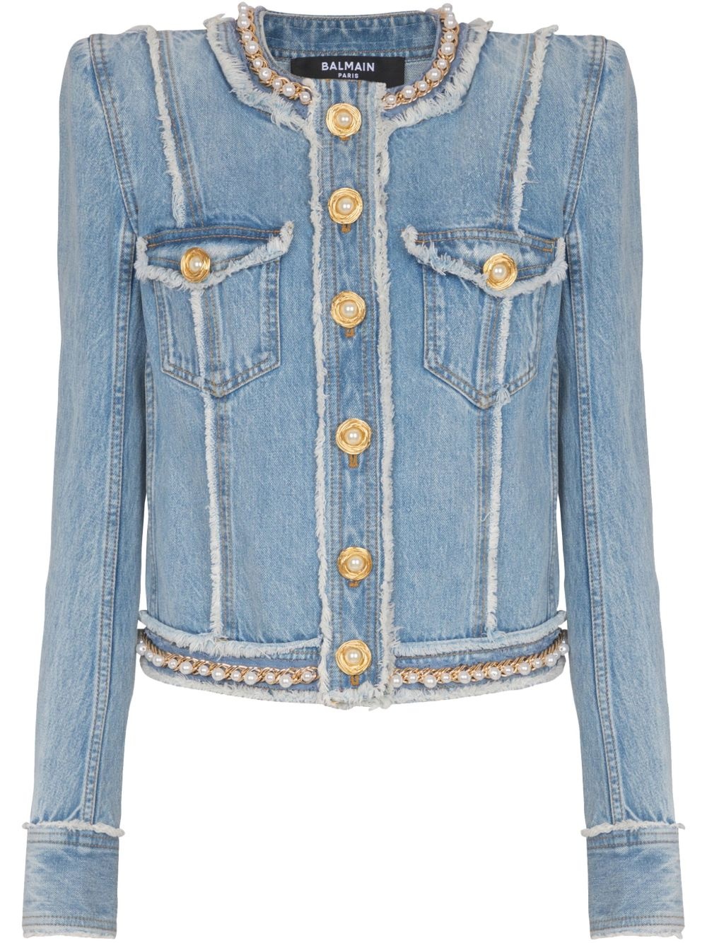 Denim jacket with pearl trim