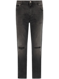 distressed finish slim-cut jeans Highlights - Black - Cotton - Stonewashed - Distressed finish - Slim cut - Low-rise - Whiskering effect at the thighs - Belt loops - Front button and zip fastening - Classic five pockets - Logo tag - Ankle-length Made in Italy Composition Cotton 100%