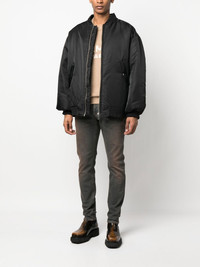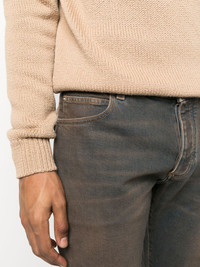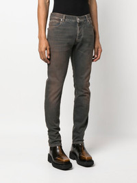distressed slim-fit jeans A nod to the brand's penchant for bold denim silhouettes, these faded black mid-rise jeans from Balmain are cut for a slim fit and elevated with distressed accents throughout for a worn-in appearance. Made in Italy Composition Outer: Cotton 98%, Elastane 2% Lining: Polyester 65%, Cotton 35% SIZE & FIT Model measurements Height 6 ft 2 in(1.87 m) Bust/Chest 36.22 in(92 cm) Hips 37 in(94 cm) Waist 27.95 in(71 cm) FittingInformation This piece fits true to size. We recommend you get your regular size Cut for a slim fit Made with a mid-weight stretch fabric Washing instructions Machine Wash