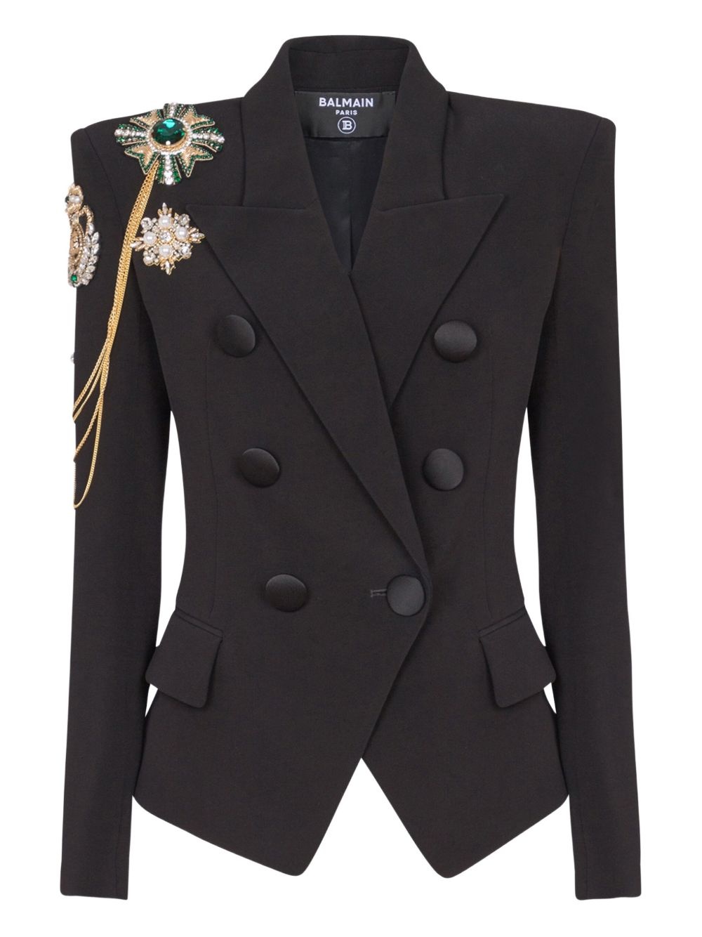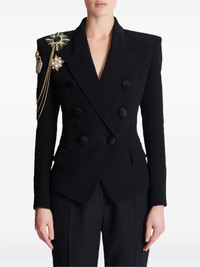 Crepe 6-button jacket with embroidered patches