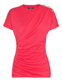 draped-detail button T-shirt Highlights - Pink - Draped detail - Button embellishment - Round neck - Short sleeves - Logo detail Imported Composition Cotton 100% Washing instructions Specialist Cleaning