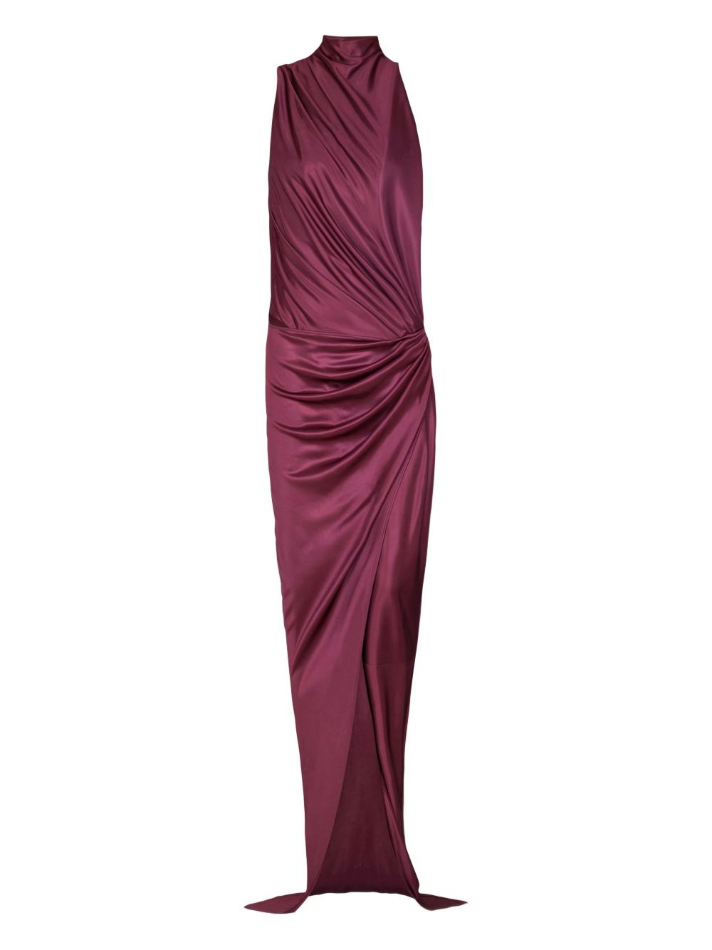 draped high-neck maxi dress Highlights - Dark red - High neck - Sleeveless - Draped design - Front slit - Gathered waist Made in France Composition Viscose 100% Washing instructions Read Manufacturer Guidelines