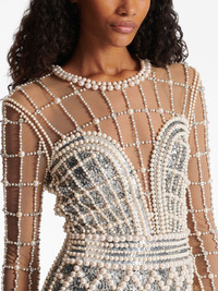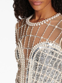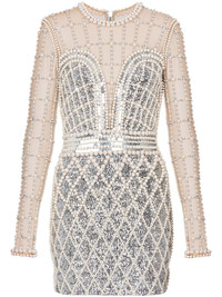 embellished beaded minidress Highlights - Silver-tone - Trompe l'oeil bustier - Faux-pearl embellishment - Bead embellishment - Sequin embellishment - Round neck - Long sleeves - Rear zip fastening - Straight hem - Thigh-length Made in France Composition Body: Polyamide 97%, Elastane 3% Washing instructions Specialist Cleaning