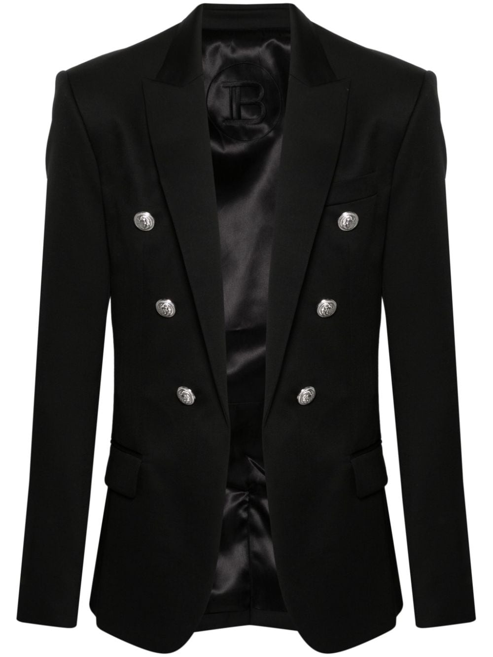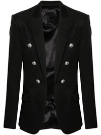button-embellished wool blazer Balmain is lauded for its tailored outerwear. A case in point, this black blazer is cut from wool to a classic single-breasted silhouette and traced with signature lion head buttons in a polished silver-tone hue. Highlights - Black - Wool - Faille - Peak lapels - Long sleeves - Buttoned cuffs - Chest welt pocket - Two front flap pockets - Full lining - Two internal slip pockets - Central rear vent - Embossed silver-tone buttons - Decorative double-button detail Imported Composition Lining: Cotton 100%, Acetate 65%, Viscose 35% Outer: Wool 100% SIZE & FIT Model measurements Height 6 ft 0 in(1.84 m) Bust/Chest 35.82 in(91 cm) Hips 37 in(94 cm) Waist 28.34 in(72 cm) FittingInformation Designed for a slim fit, offering a comfortable fit that sits just away from the body The internal shoulder pads offer a structured shape Made from a midweight non-stretch fabric This piece fits true to size – take your usual size Washing instructions Dry Clean Only