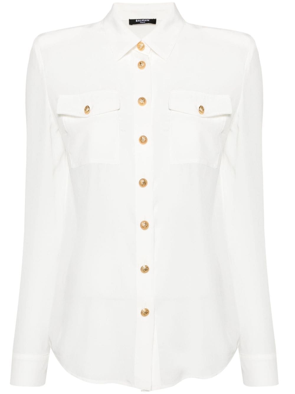 embossed-buttons silk shirt Highlights - 100%se Imported Composition Silk 100% SIZE & FIT Model measurements Height 5 ft 11 in(1.8 m) Bust/Chest 33.07 in(84 cm) Hips 37.4 in(95 cm) Waist 25.19 in(64 cm) Measurement LENGTH 26.37 in(67 cm) WAIST 35.43 in(90 cm) SLEEVE LENGTH 24.8 in(63 cm) FittingInformation Designed to be unstructured, offering a loose fit throughout The internal shoulder pads offer a structured shape Made from a lightweight non-stretch fabric This piece fits true to size – take your usual size Washing instructions Dry Clean Only