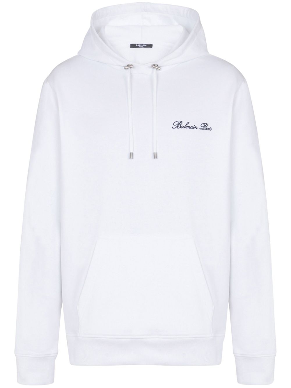 embroidered-logo hoodie Highlights - White - Cotton - Jersey texture - Embroidered logo at the chest - Drawstring hood - Long sleeves - Ribbed cuffs and hem - Front pouch pocket Imported Composition Cotton 100% SIZE & FIT Measurement CHEST 44.09 in(112 cm) LENGTH 29.13 in(74 cm) SLEEVE LENGTH 37.4 in(95 cm) Shoulder Width 18.89 in(48 cm) FittingInformation Designed for a relaxed fit, this piece allows for comfort and movement when worn The ribbed hem offers a close, comfortable fit Made from a midweight non-stretch fabric, this piece offers minimal elasticity when worn
