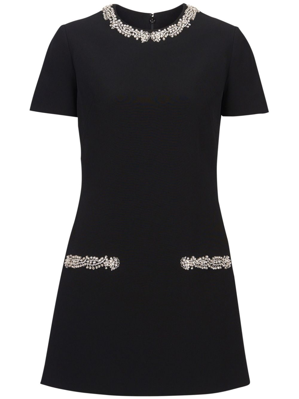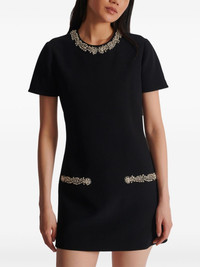 embroidered shift dress Highlights - Black - Crepe texture - Embroidered trim - Round neck - Beaded trim detail - Crystal embellishment - Concealed rear zip fastening - Short sleeves - Straight hem Imported Composition Viscose 100%