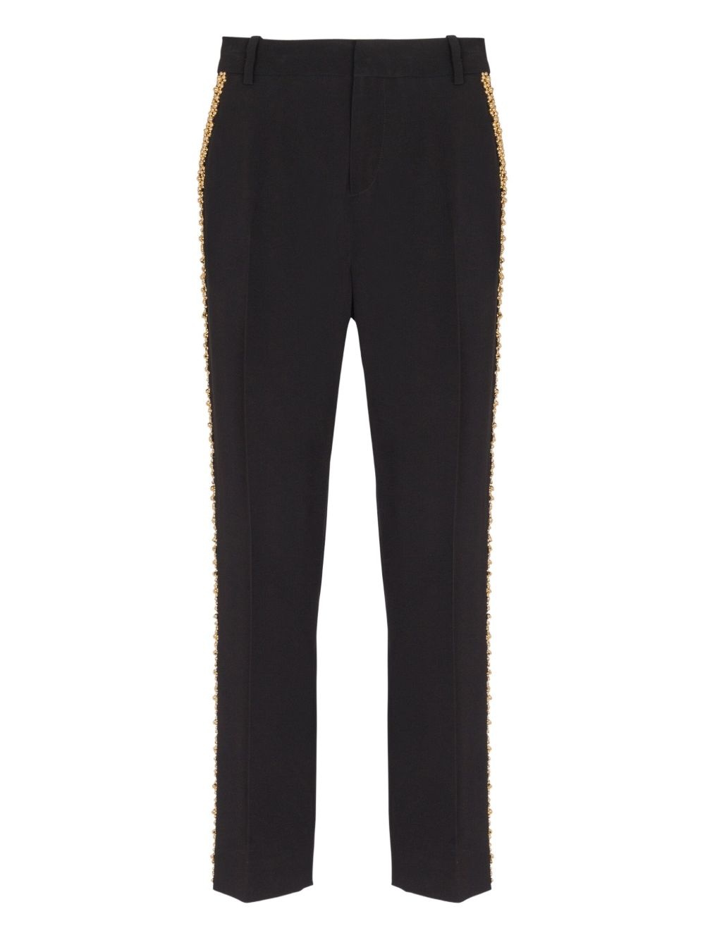 embroidered straight-leg trousers Highlights - Black - Concealed front fastening - Embroidered design - Belt loops Imported Composition Viscose 100%