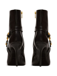 Eva 95mm logo-plaque ankle boots Highlights - Black - Calf leather - Gold-tone logo plaque - Harness detail - Ankle-length - Side zip fastening - Pointed toe - High stiletto heel Made in Italy Composition Outer: Calf Leather 100% Sole: Leather 100% Lining: Calf Leather 100% SIZE & FIT Measurement HEEL 3.74 in(9.5 cm)