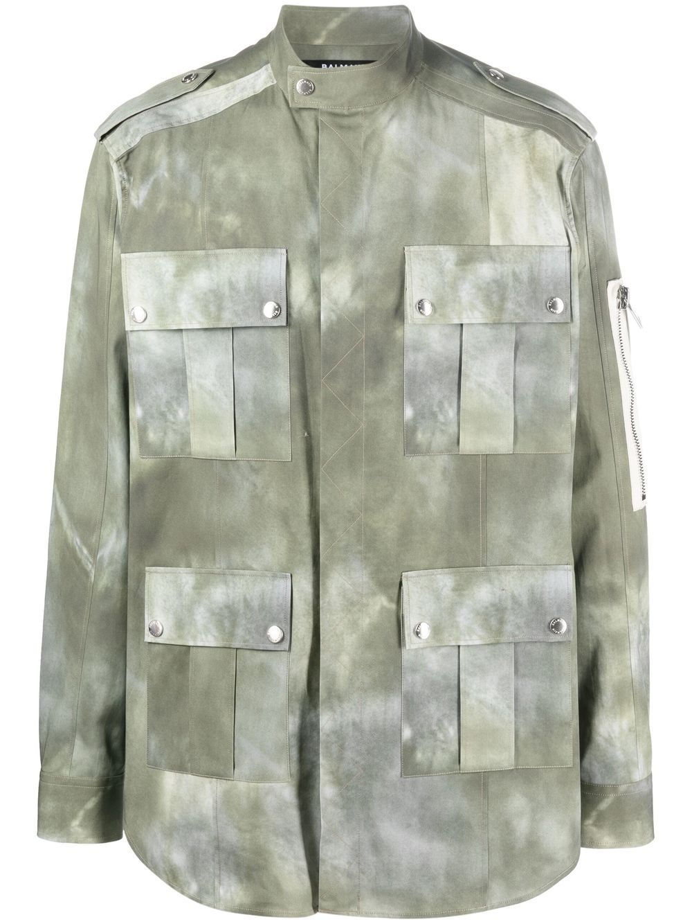 faded-effect military jacket green cotton faded effect high neck concealed front fastening front cargo pockets epaulettes long sleeves sleeve zip pocket press-stud fastening cuffs curved hem Made in Italy Composition Cotton 100% SIZE & FIT Model measurements Height 6 ft 0 in(1.84 m) Bust/Chest 36.22 in(92 cm) Hips 35.43 in(90 cm) Waist 26.77 in(68 cm)