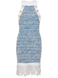 Fringed denim tweed dress