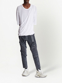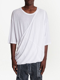 gathered-panel detail T-shirt cloud white cotton gathered detailing round neck short sleeves long length Imported Composition Cotton 100%