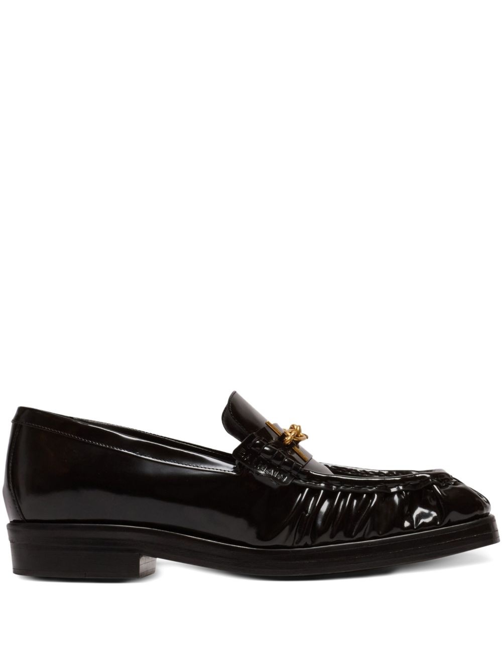 glazed leather loafers Highlights - Black - Square toe - Chain-link detailing - Flat sole Made in Italy Composition Outer: Patent Calf Leather 100% Sole: Calf Leather 100% Lining: Calf Leather 100%