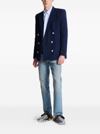 grain de poudre blazer Highlights - Navy blue - Double-breasted button fastening - Chest welt pocket - Two side patch pockets - Embroidered logo at the sleeve Imported Composition Cotton 100% SIZE & FIT FittingInformation Designed for a slim fit, offering a comfortable fit that sits just away from the body The internal shoulder pads offer a structured shape Made from a midweight non-stretch fabric