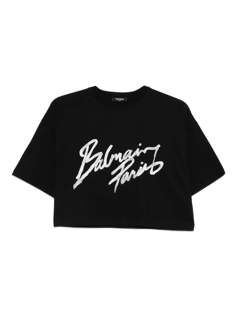 graphic-print t-shirt Highlights - Black - Graphic print - Cropped style - Short sleeves - Round neck Imported Composition Cotton 100% SIZE & FIT Model measurements Height 5 ft 10 in(1.79 m) Bust/Chest 33.46 in(85 cm) Hips 35.43 in(90 cm) Waist 24.01 in(61 cm) Washing instructions Machine Wash