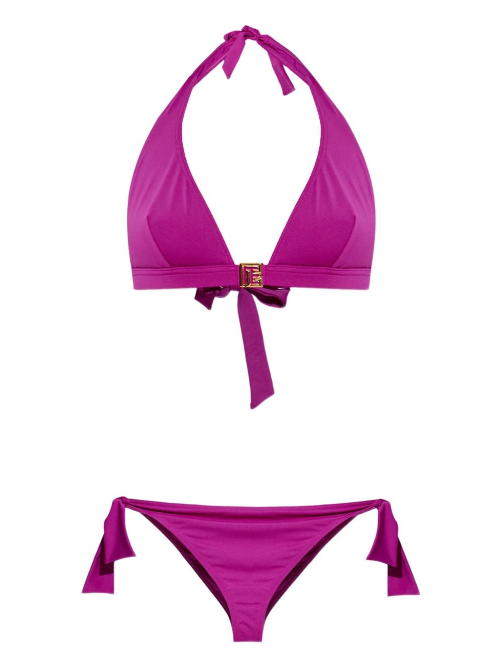 halter-neck bikini set Highlights - Fuchsia pink - Tie fastening at neck and sides - Adjustable halter neck - Gold-tone buckle detail - Minimal coverage bottom - Be mindful to try on swimwear over your own garments. Made in Italy Composition Polyamide 84%, Elastane 16% Washing instructions Read Manufacturer Guidelines